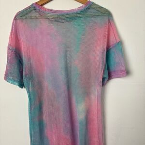Pastel Rainbow Pink Blue Fishnet Mesh Swim Cover Up and Festival Dress One Size