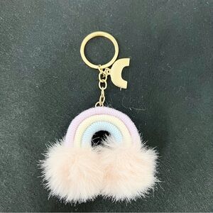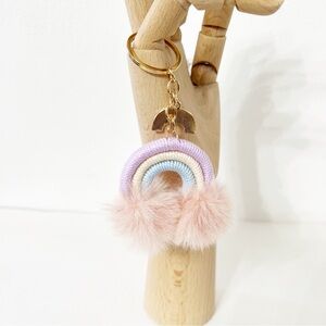 How adorable is this pastel rainbow keychain?! Perfect for adding a little fun & color to your keys, purse, or backpack. Features a soft rope rainbow design with fluffy pink pom poms and a cute little rainbow charm. Lightweight and easy to clip on for instant cuteness!