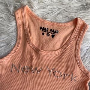 early 2000s bedazzled gem new york spell out pastel light orange ribbed crop cami🤍made in the USA🇺🇸