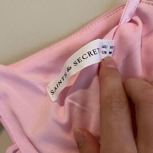Charming pastel dress with ruffled layers.