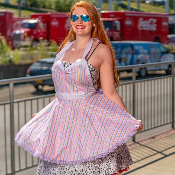 Pastel Sparkle Stripe Handmade 50's Style Pin-up apron - One of a kind!