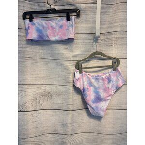 Pastel Tie Dye Swimsuit Two Piece Bandeau High Waist Size M