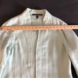 The perfect blend of workwear and summer fashion, this pretty mint green linen blazer will get you through your day with ease.