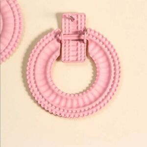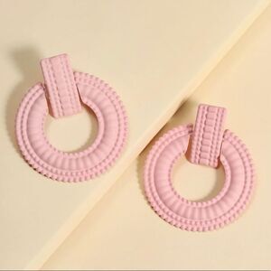 Ladies super pastel pink Grecian circle Art Deco style patterned square statement earrings. New with tags. Approximately 1" long and lightweight. Made from hypoallergenic nickel free metal.