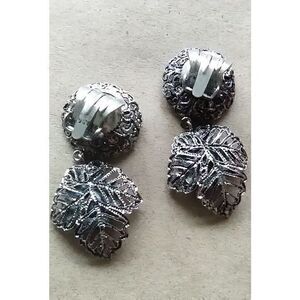 Pastel Rhinestone Dangling Leaf Clip On Earrings Silver Unmarked