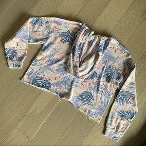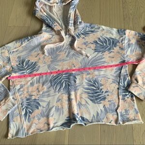 Pastel Tropical Print Cropped Hoodie, raw "cut off" bottom edge, see measurements for sizing - super cute, lightweight, soft and comfy