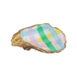 Pastel plaid decoupage oyster trinket tray