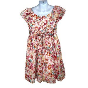 Pastourelle NYC Girls’ Dress 6 Butterfly Print Fit Flare Ruffle Cap Sleeve Ties