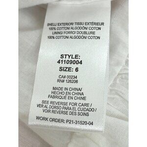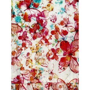 0277B- Pastourelle NYC Girls Butterfly Print Dress, 6, double lining with 4.25” ruffle hemline on inner lining. 24” waist, 28” length. Colors: Red, yellow, white, orange, teal, pink, fuchsia, green. Button back closure, white buttons, logo embossed. Rounded neckline. Double ruffled cap sleeves.Attached 2” matching ties in back. Shell: 100% cotton, lining: 100% cotton. Style: 41109004.