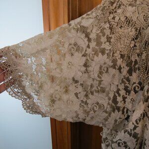 Pat Dahnke Handmade Ivory/Tan Lace Cardigan Kimono BeadedTexas Luxury One Size