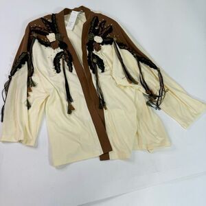 Pat & Janet Cardigan Womens Medium Cream Boho Floral Tassels Embroidered New
