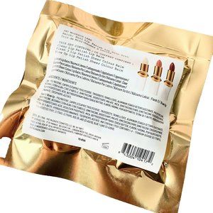 The set includes three of the sheer lip fetish lip balms in the shades Clear, Blow Up (a warm beige) and Flesh 3 (a bronzed rose). The formula is shea butter based and glides on so easily. The balms feel very lightweight but also hydrating and are infused with soothing emollients, antioxidants and vitamins that protect from free radicals and restore softness and elasticity and they leave a gorgeous sheen behind!