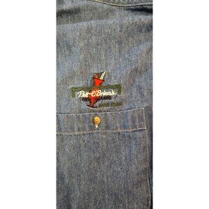 This Vintage Pat O'Brien's denim shirt offers a comfortable fit and classic look. Its embroidered logo adds a touch of distinction, suitable for casual settings.