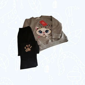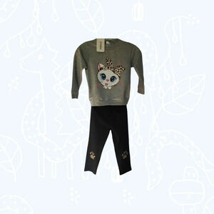 PatPat 2 pieces toddler girl cat print pullover sweatshirt and leopard print pant soft and confty,top 65%cotton 35%polyester,bottom95%cotton5%spandex brand new from smoke and pet free home.0288