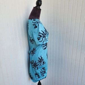 Pat Pat Womens Stretch Mini Shirt Dress Tropical Pattern Monstera Short Sleeve M