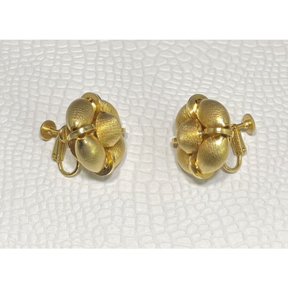 Pat. Pend. Elegant Two Tone Gold Tone Metal Clip On Earrings Vintage