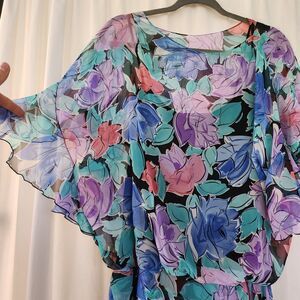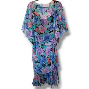 Pat Richards By Michael Maielleo Dress Size S Pastel Floral Flowy Whimsy Vtg USA