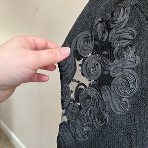 Vintage Pat Sandler Wellmore For Saks Fifth Avenue Black Santana Knit Puff Sleeve Dress 8-10