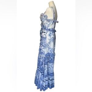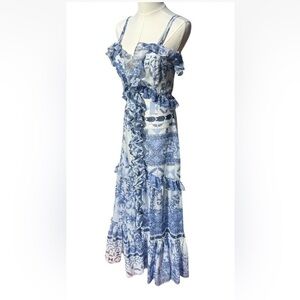 PatBO Amalfi Convertible White/Blue Printed Ruffle Chiffon Maxi Dress Size XS