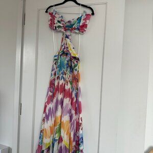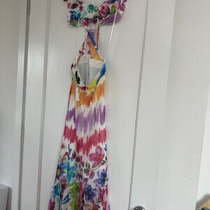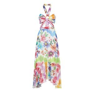 PatBO Bloom Cutout Flare Maxi Dress Halter Neck Back Tie Multicolor Print Size 6