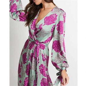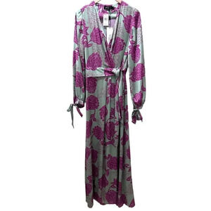 NWT PatBO Celia Maxi Wrap Dress Floral V-Neck Long Sleeve in Aqua Women's Size 10