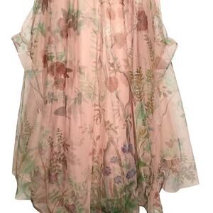 PatBO Floral Printed Tulle Full Length Dress Beaded Sequin Embroidered 6 NWT