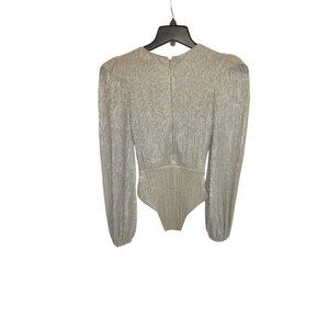 PatBO Gold Metallic Blouson Sleeve Deep V Bodysuit NWT – Size XS
