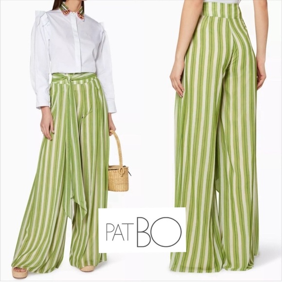 PatBO Green Striped Wide Leg Tie Waist Pants Resort Wear Palazzo Trousers Sz. 0