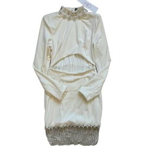 PatBO Hand-Beaded High Neck Minidress sz 8