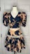 PatBO Navy Tan Floral Puff Sleeve Ruffle Lace Trim Boho Chic Mini Dress Size 2