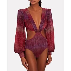 PatBO Ombre Lurex Plunging V-Neck Cut Out Bodysuit Pink Multi Women's Size S