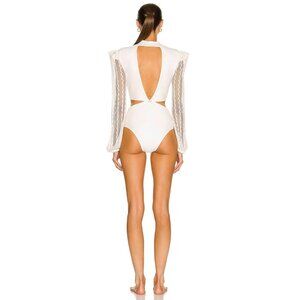 PatBO Plunge Netted Sleeve Swimsuit in White M NWOT $450