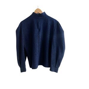 PatBO Womens Highneck Dolman Long Puff Sleeve Lurex Top Metallic Blue Size Small
