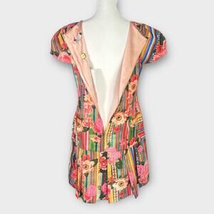 PatBo Fit and Flare Mini Dress 42/Med Multicolor Silk Blend Floral Striped NWT