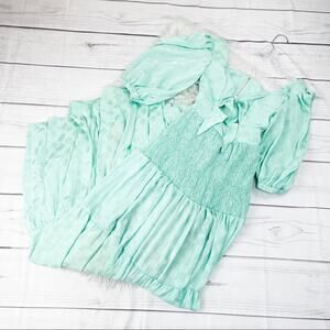 PatBo Women's Satin Dot Ruched Barrel cuff Maxi Dress in Green Size 2