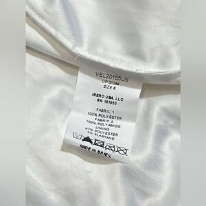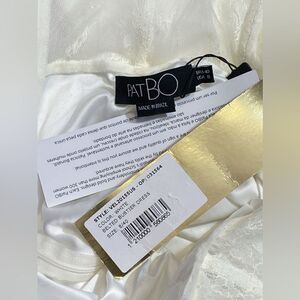 This bustier dress features a lace-paneled bodice with underwire support and a full skirt.