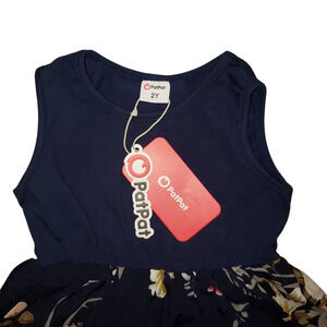 PatPat Toddler Girls’ Navy Floral Dress 2T |Cotton Sleeveless Summer Outfit NWT