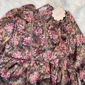 Patachou Long Sleeve Floral Top button down back Size 3 year