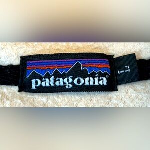 Patagonia 1/4 Zip Pullover Fleece Sweatshirt in Cream with Navy Trim, Size Large