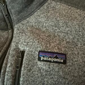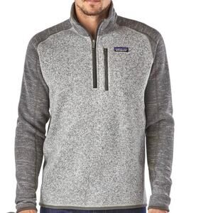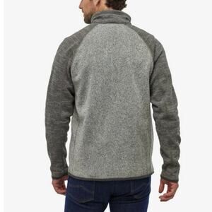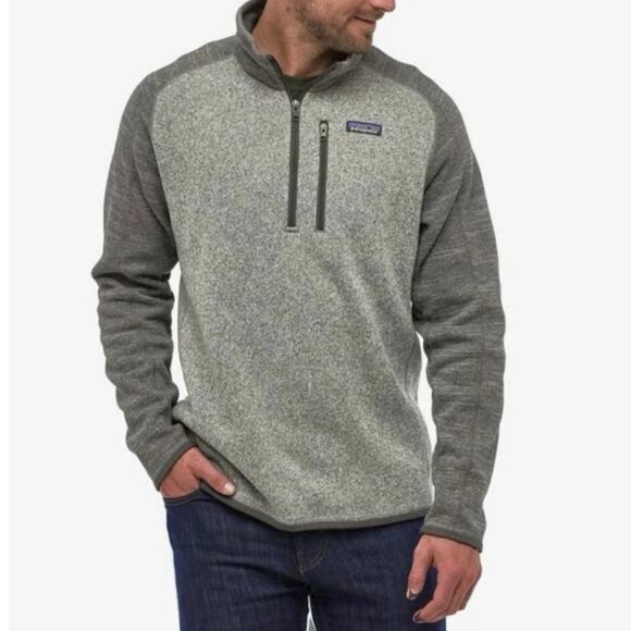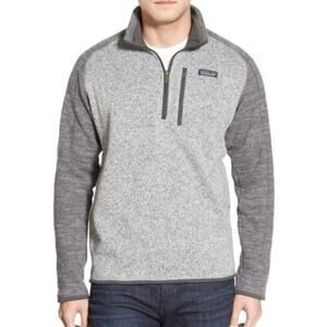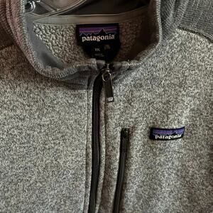 Patagonia quarter zip Better Sweater fleece lined interior, heathered stone wash gray forge nickel grey, two tone light and dark gray trim, logo sewn onto left chest, stand up collar, deep zippered left chest pocket, men's size XXL in excellent condition.