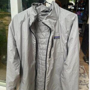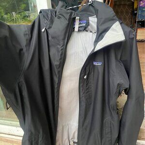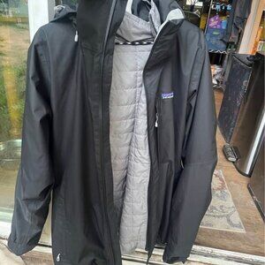 Women's patagonia size XL winter jacket - outer shell is waterproof, breathable 2 layer "H2No" technology, inside is a reversible puffer jacket w/ 100% polyester fill, similar to Nanopuff. Has a removable, helmet-compatible hood, armpit zippers, and a powder skirt that also connects to any Patagonia snow pants. Can be worn together or as just the shell or puffer - great for snow sports!