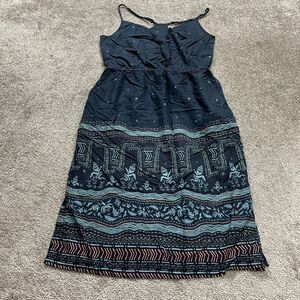 Patagonia A-Line Dress Womens Medium Chambray Sleeveless Racer Back Pockets Boho