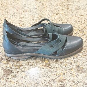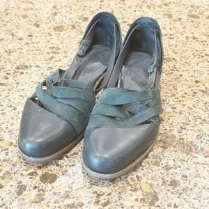 Patagonia Addie Weave Black Leather Ankle Strap Closed Toe Flats
