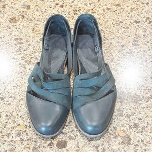 Patagonia Addie Weave Black Leather Ankle Strap Closed Toe Flats 9