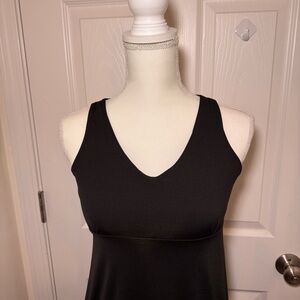 Athletic dress from Patagonia in the color black. V-neck. Twisted design in back. Built in bra.