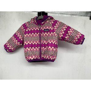 Stay warm and stylish with this Patagonia Baby Quilted Circle Hooded Jacket. Sized for 6 months, the jacket features a raspberry purple exterior and a reversible knit print interior. No tags, material not provided.