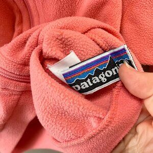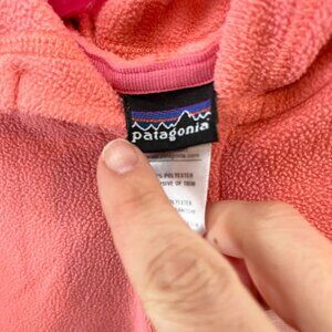 Patagonia Baby Fleece Jacket With Hood Pink Zippered Front Size 18M Polyester Co