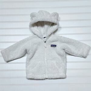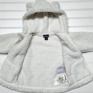 Patagonia Baby Furry Friends Fleece Hoodie Jacket, size 3-6 months, Birch White, split kangaroo pocket, no stains or spots, very good condition.
