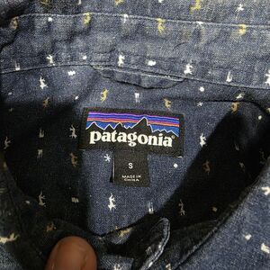 Patagonia Back Step Shirt Mens Size Small Blue Button Up Short Sleeve Hemp Blend sold as is see pictures for reference and measurements
