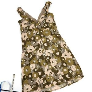 NWOT Patagonia’s Badoo Shell Camo WaterGirl Sun Dress with pleated front detail, tie at bust line and lined throughout. A line flowy skirt in a floral pink and green camouflage- super gorgeous! Has feminine cap shoulders and a V-neck line in front & back.